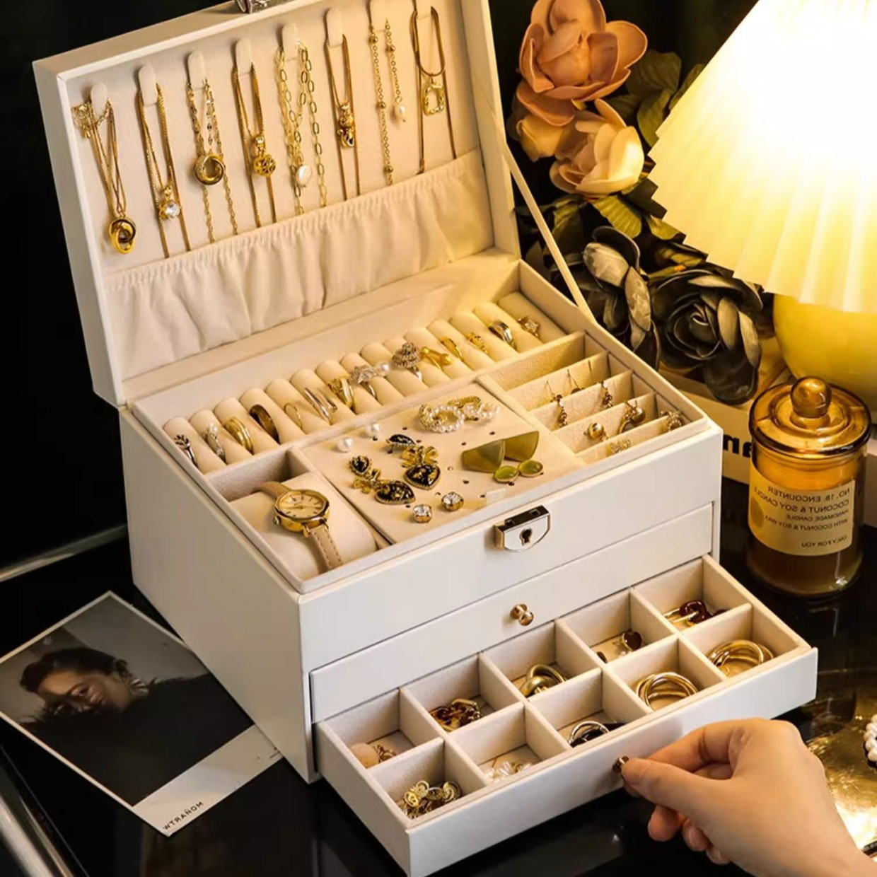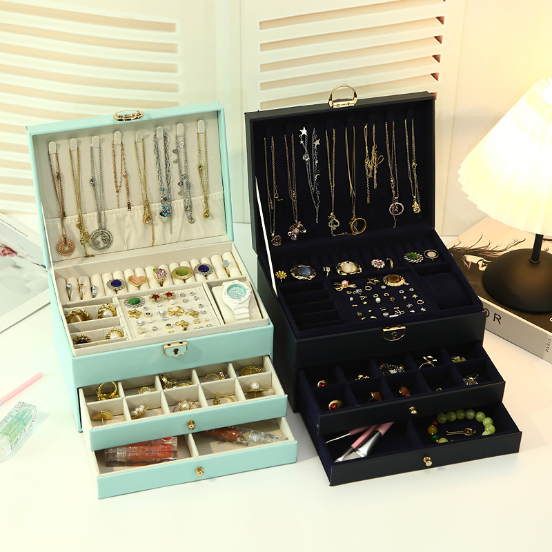 고급 가죽 대용량 다층 서랍식 악세사리 보관함